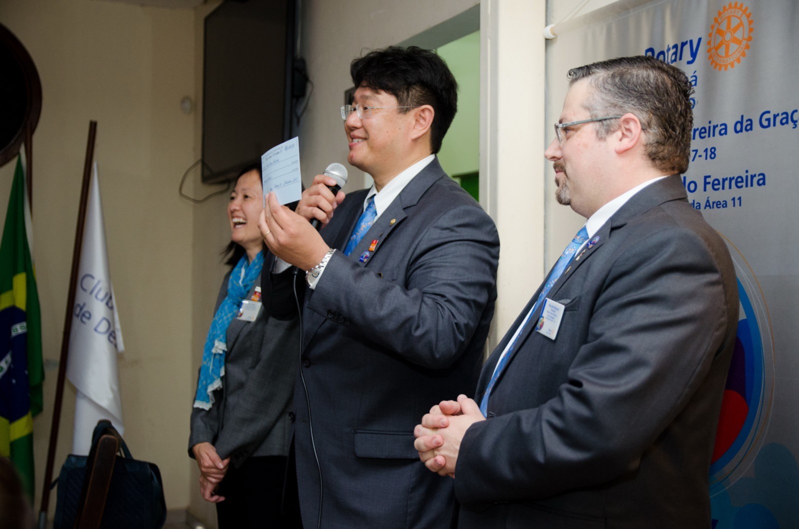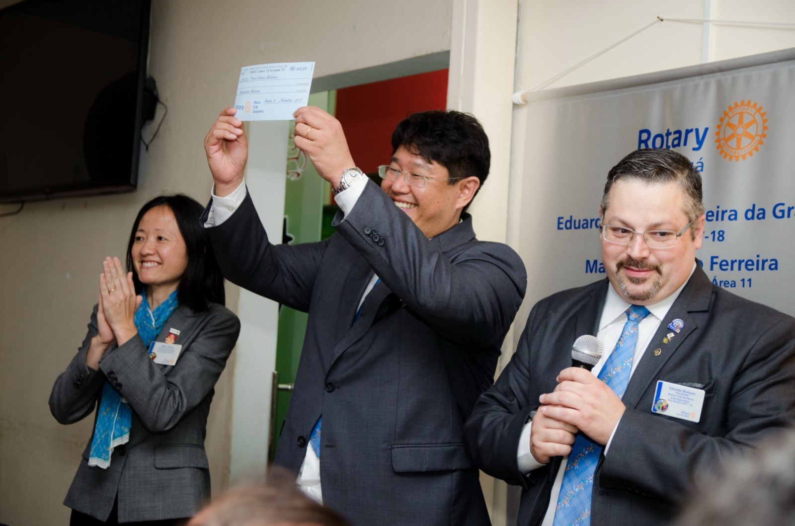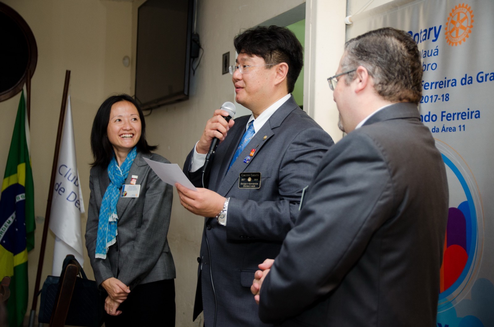 Após foi realizada à assembleia com integrantes da equipe rotária. Takata reforçou que para o novo ano rotário 2017-2018 foram definidas como prioridades as seguintes estratégias organizacionais: fortalecimento e apoio aos clubes; maior enfoque a expansão dos serviços humanitários como o reforço do combate a poliomielite, o plantio de árvores, aumento da projeção e imagem pública da organização, entre outros.