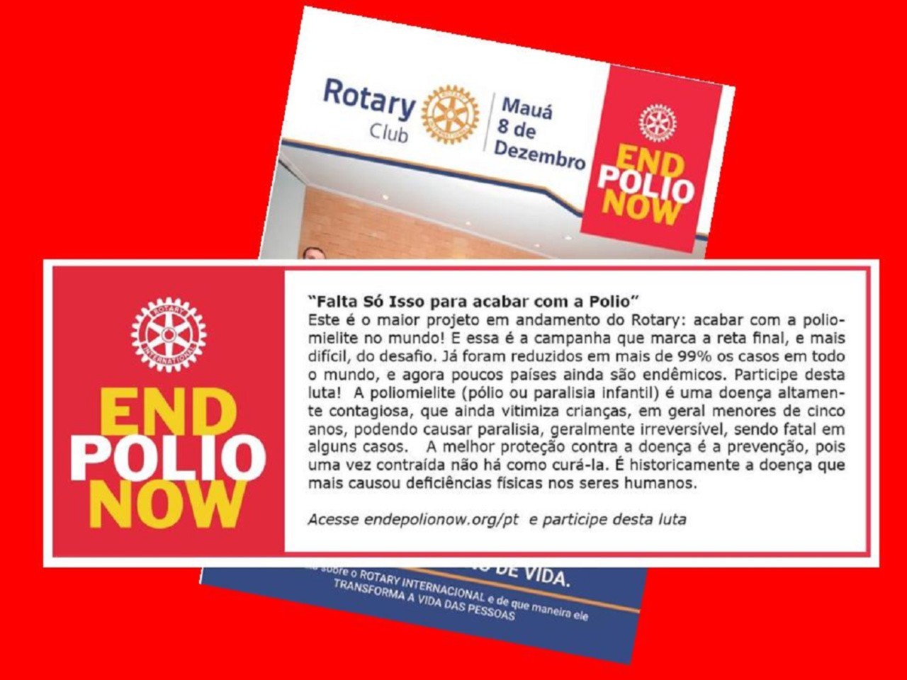 A campanha End Polio Now teve grande destaque na revista Comemorativa de 1 ano do Rotary Club Mauá 8 de Dezembro. Gerson Ribeiro, imagem pública do Clube, disse que em sua opinião o maior projeto do Rotary International deveria sempre fazer parte de qualquer publicação rotária.